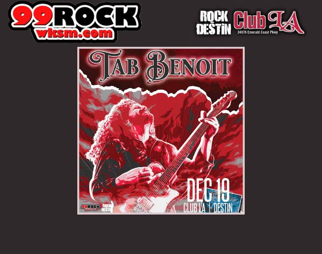Don’t miss the awesome Tab Benoit with Jesse Dayton on Friday, December 19th at Club LA in Destin. Tickets available now at RockDestin.com